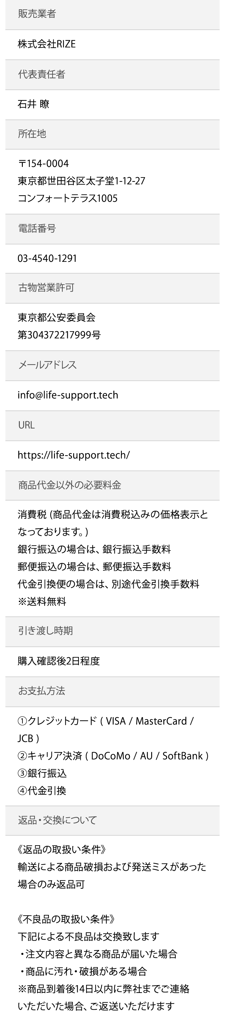 特定商取引法に基づく表記